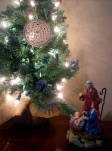 I made this tonight out of crochet thread size 10, a 1/B hook, and a bangle that I got in a set in the Wal-Mart jewelry section. Cheap, pretty, AND homemade, these would be great gifts! This one was started out as a granny square, then turned into a circle. Both the square and the circle patterns are on this site, so you can make these yourself! I’m gonna make some more — they’re so pretty!