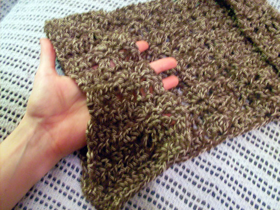 It’s the back panel and the front 2 panels sewn together. Now I’ve just got the sleeves and the collar/rest of the bodice. I’m regretting using the Lion Brand Fisherman’s Wool simply because the tweedy look hides the pretty shells and little lacy panels.