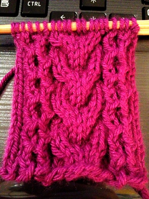 So far, no mistakes (that I know of). I’m crossing my fingers for continued success, because I wouldn’t know how to go back to a previous row with this pattern of complicated cables and twists if I did mess up. Well, it’s complicated to me, at least. But hey, I wanted a challenge, right?