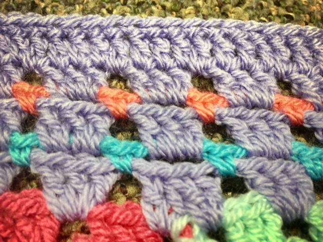 The baby blanket is kind of small, though… It’ll have to be for a newborn or something. I just ran out of yarn for some of my colors and I couldn’t put the blanket’s colors into imbalance by continuing further. I dunno. Maybe I could use it for something else? I mean it’s not like I know any babies, or any friends who are about to have babies. I don’t know what else I’d use it for, though. My dog does not get such nice things because she unwittingly tears up yarny things with her claws. *sigh* The blanket might just stay stowed away until someone I know has a baby. I could donate it, I suppose. We’ll have to see.