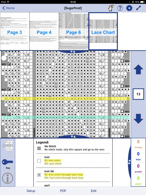 You can import PDFs from various sources, keep track of multiple patterns at once, and make a variety of annotations. You can cut out unnecessary pages, paste multiple pages of charts together to make one large chart, set up an interactive chart and legend/key, and so much more. Here’s how I’ve been using it: