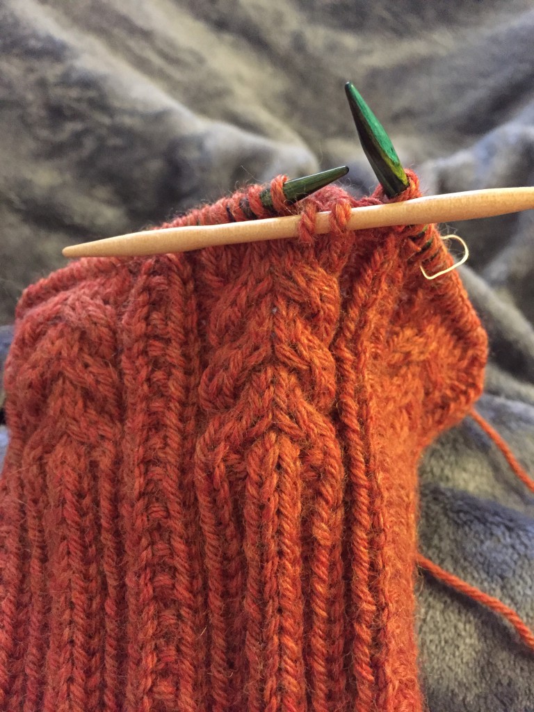 I’m actually done, so a finished photo and description will show up after Christmas is over. Β I’ll go ahead and say that Berroco Vintage yarn is cozy! Β π