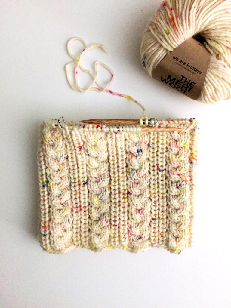 The yarn is The Meri Wool from We Are Knitters and it is SO soft. Can’t wait to wear it! And I didn’t know how much yarn I’d need for the cowl so I’m going to have a fair amount of leftovers for other toasty items! Maybe I’ll make a set — I don’t usually do that.