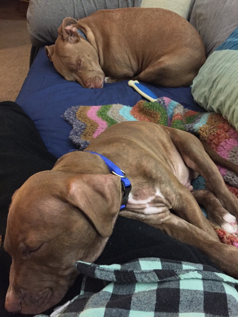 They look like they could actually be related, don’t they? But he’s actually a half beagle, half pit mix that we found at a no-kill shelter thanks to my boss, who brought in a girl from the litter to work on Monday and told me that there were still boys left. He’s 12 weeks now, and his name is Roll (keeping with the Megaman theme Chris started with Zero). It’s hard to get a picture of him awake because he’s in constant motion, but here’s my best shot: