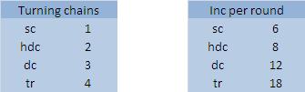 Here are charts detailing how to make a circle with different kinds of stitches. If you’re making a circle with joined rows/rounds, you’ll need the turning chain chart, but if you’re working in the round you can ignore this.