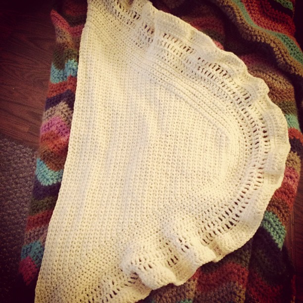 If you have more yarn, you can do two more rows of tr. I just ran out of yarn.