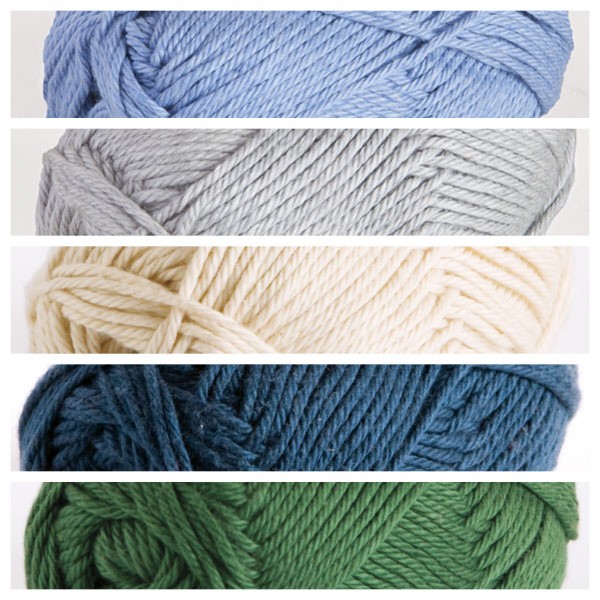 - 1 full size ball each of colorways Pennyroyal, Blush, Oat, & Sky