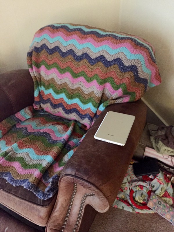 I like to watch movies or TV shows or listen to audiobooks while I knit & crochet, or sometimes I’ll sit here and read or take a nap.