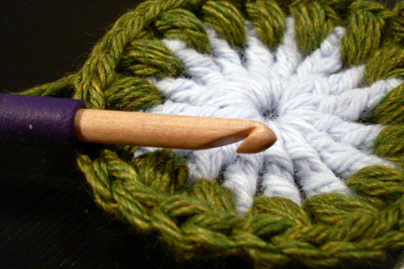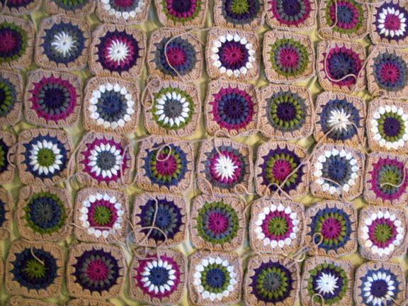 Here are some more pics of my granny blanket yarn and my blanket circles, which are coming along nicely, albeit slowly: